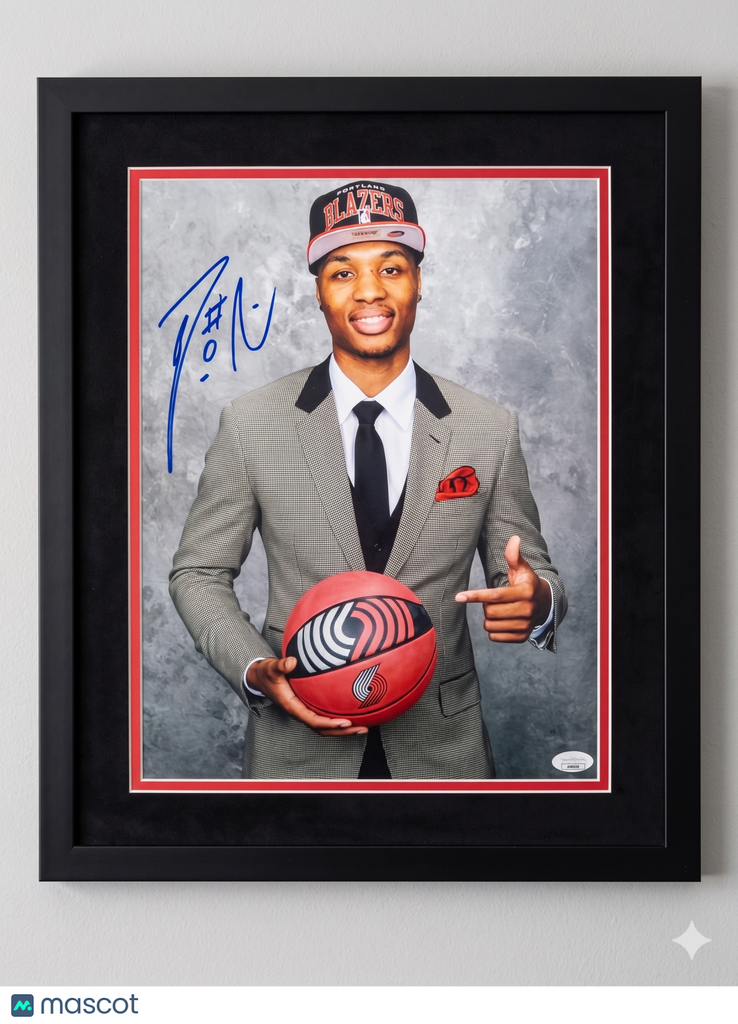 Up for sale is a signed basketball 11x14 Custom Framed Photo autographed by Damian Lillard of the Portland Trail Blazers. The autograph has been professionally authenticated by JSA, providing confidence in the authenticity of this basketball collectible. A great addition to any basketball or sports memorabilia collection.