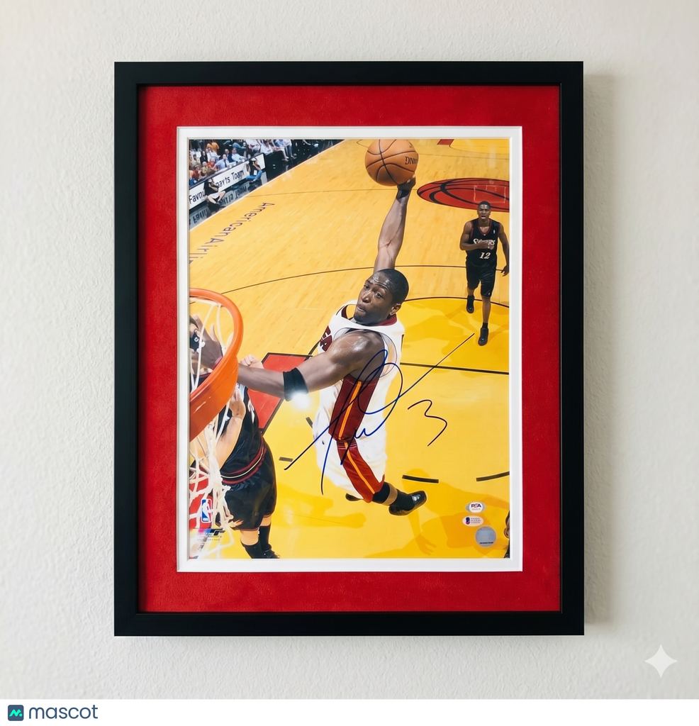Up for sale is a signed basketball 16x20 custom framed Photo autographed by Dwayne Wade of the Miami Heat. The autograph has been professionally authenticated by PSA, providing confidence in the authenticity of this basketball collectible. A great addition to any basketball or sports memorabilia collection.