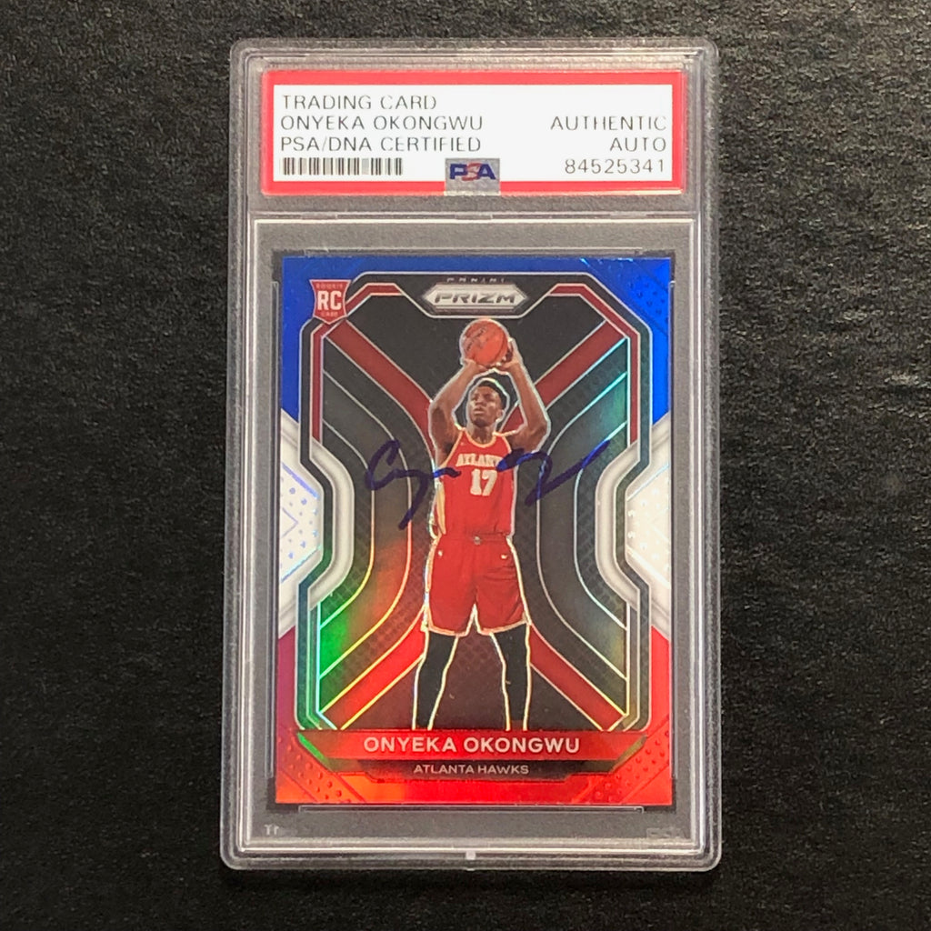 2020-21 Panini Prizm Red White Blue #260 Onyeka Okongwu signed AUTO Card PSA/DNA Slabbed RC Hawks