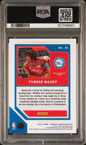 Thank you for checking out our store! We value each and every customer and want you to be happy with the purchase you are making. You are purchasing a 2020 Panini Chronicles #76 Tyrese Maxey PSA A Auto 10 . We’d like to encourage you, our customer, to reach out to us if you come across any questions. We always take the time to respond to a message from our customers and we’re happy to hear from you! Listed With Mascot.