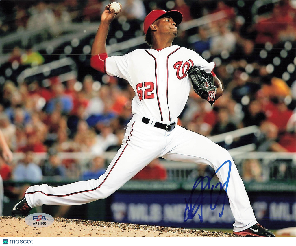 Up for sale is a Photo hand signed by Anel De Los Santos of the Washington Nationals. This autographed photo is professionally authenticated by PSA, ensuring authenticity for collectors and fans alike. A great addition to any sports memorabilia collection. Listed With Mascot.