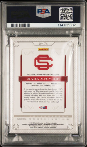 Thank you for visiting our store! We take pride in offering authentic, high-quality collectibles and want every customer to feel confident in their purchase. This listing features a 2015 Panini National Treasures Collegiate #76 06/99 Mark Mcgwire, professionally authenticated. Each item is carefully inspected prior to shipment and securely packaged for safe delivery. If you have any questions before or after your purchase, please don’t hesitate to reach out. We are committed to providing fast, friendly customer service and are always happy to help. Listed With Mascot.