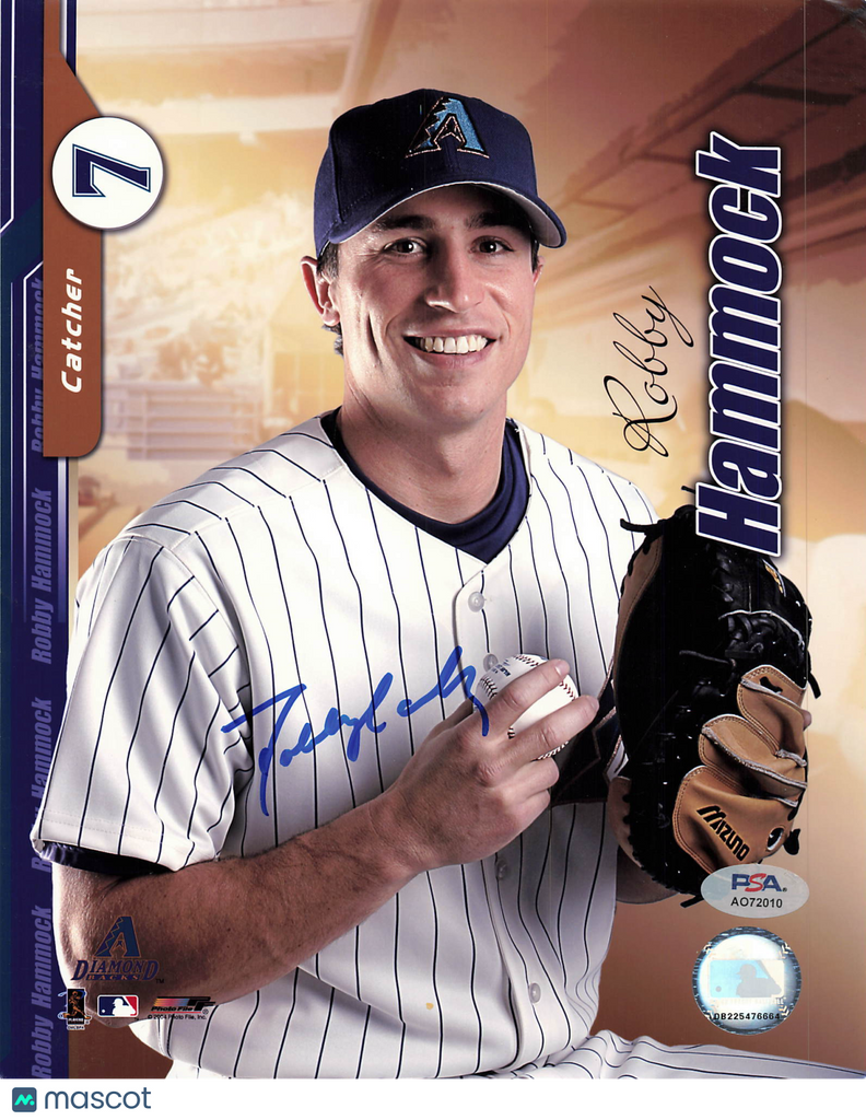Up for sale is a 8x10 Photo hand signed by Robby Hammock of the Arizona Diamondbacks. This autographed photo is professionally authenticated by PSA, ensuring authenticity for collectors and fans alike. A great addition to any sports memorabilia collection. Listed With Mascot.