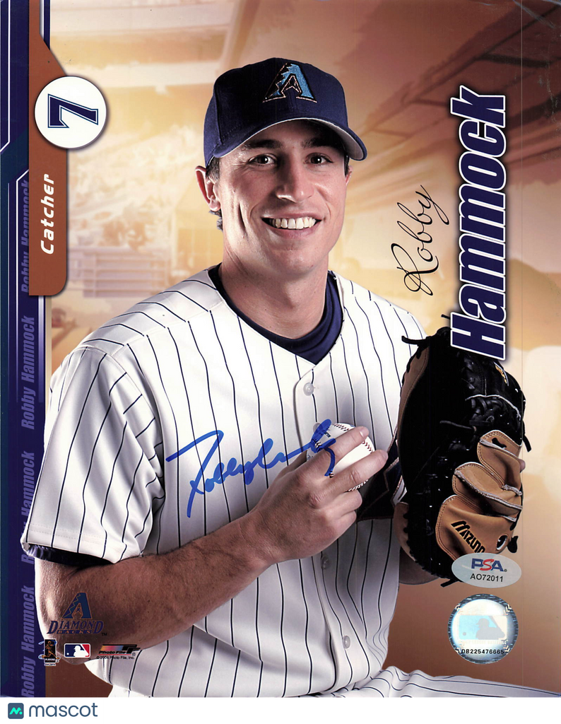 Up for sale is a 8x10 Photo hand signed by Robby Hammock of the Arizona Diamondbacks. This autographed photo is professionally authenticated by PSA, ensuring authenticity for collectors and fans alike. A great addition to any sports memorabilia collection. Listed With Mascot.