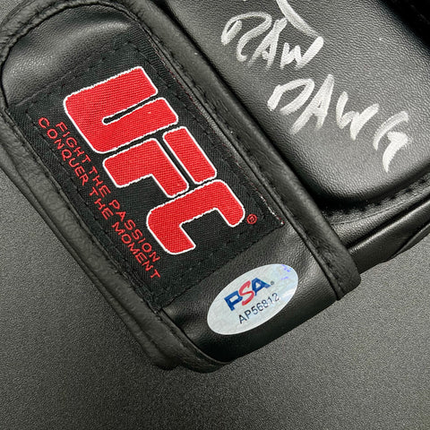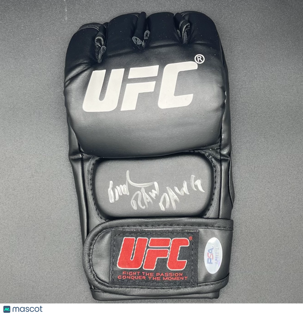 Thank you for checking out our store! We value each and every customer and want you to be happy with the purchase you are making. Up for sale is a UFC signed byBrandon Royval. The autograph of Brandon on this glove was authenticated by a team of experts at PSA/DNA, so you can rest assured you are purchasing the real deal. We’d like to encourage you, our customer, to reach out to us if you come across any questions. We always take the time to respond to a message from our customers and we’re happy to hear from you! randon Royval. You will receive the exact item in the photographs. Thank you for looking. Listed With Mascot.