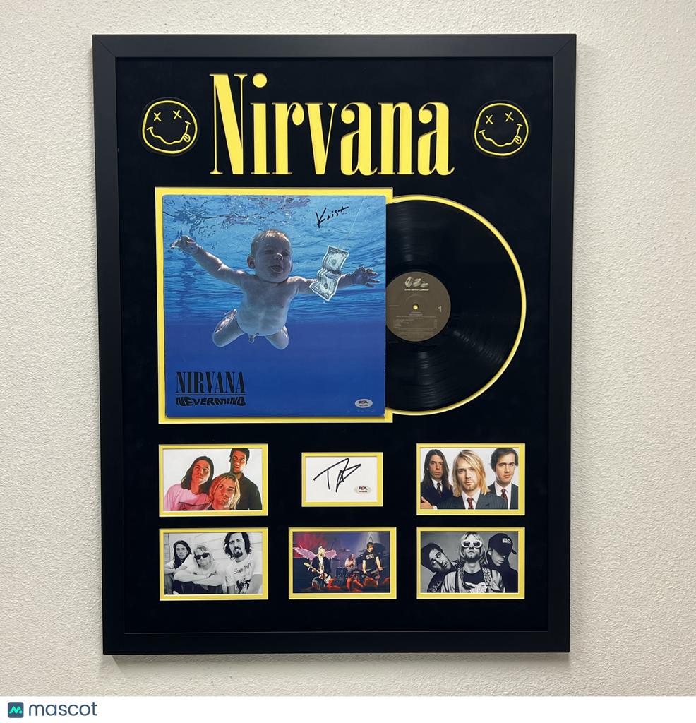 Thank you for checking out our store! We value each and every customer and want you to be happy with the purchase you are making. Up for sale is a Signed Frame autographed by Dave Grohl and Krist Novoselic. The autograph of Krist on this LP vinyl and Dave on this cut was authenticated by a team of experts at PSA/DNA so you can rest assured you are purchasing the real deal. The Frame measures 26.5 x 34.5". We’d like to encourage you, our customer, to reach out to us if you come across any questions. We always take the time to respond to a message from our customers and we’re happy to hear from you! Listed With Mascot.