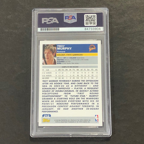 Up for sale is a 2003-04 Topps Basketball #212 card signed by Troy Murphy. The autograph of Troy on this card was authenticated by a team of experts at PSA/DNA Authentication Services (PSA/DNA) and encapsulated so you can rest assured you are purchasing the real deal.