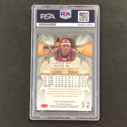 Up for sale is a 2008-09 Fleer Hot Prospects #50 card signed by Corey Maggette. The autograph of Corey on this card was authenticated by a team of experts at PSA/DNA Authentication Services (PSA/DNA) and encapsulated so you can rest assured you are purchasing the real deal.