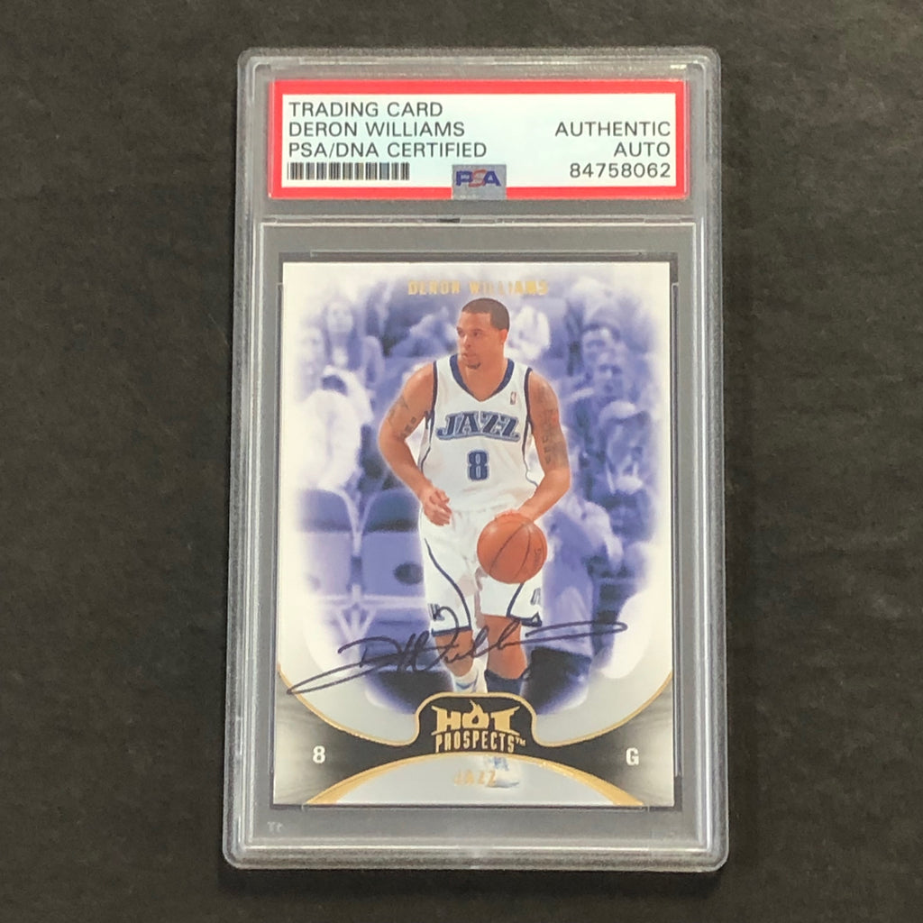 Up for sale is a 2008-09 Fleer NBA Hot Prospects #88 Card signed by Deron Williams. The autograph of Deron on this card was authenticated by a team of experts at PSA/DNA Authentication Services (PSA/DNA) and encapsulated so you can rest assured you are purchasing the real deal.