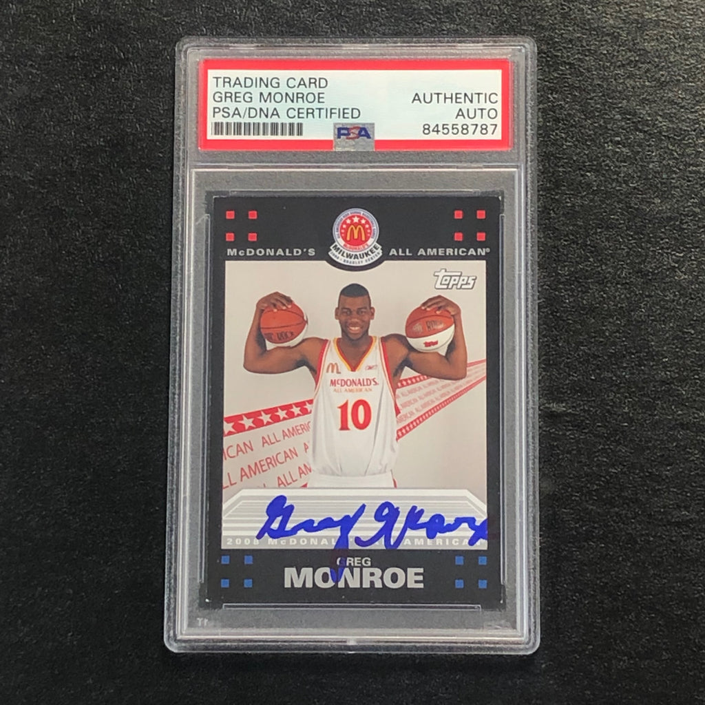 Up for sale is a 2008 Topps McDonald's All American #GM card signed by Greg Monroe who notably played for the Detroit Pistons. The autograph of Greg on this card was authenticated by a team of experts at PSA/DNA Authentication Services (PSA/DNA) and encapsulated so you can rest assured you are purchasing the real deal.