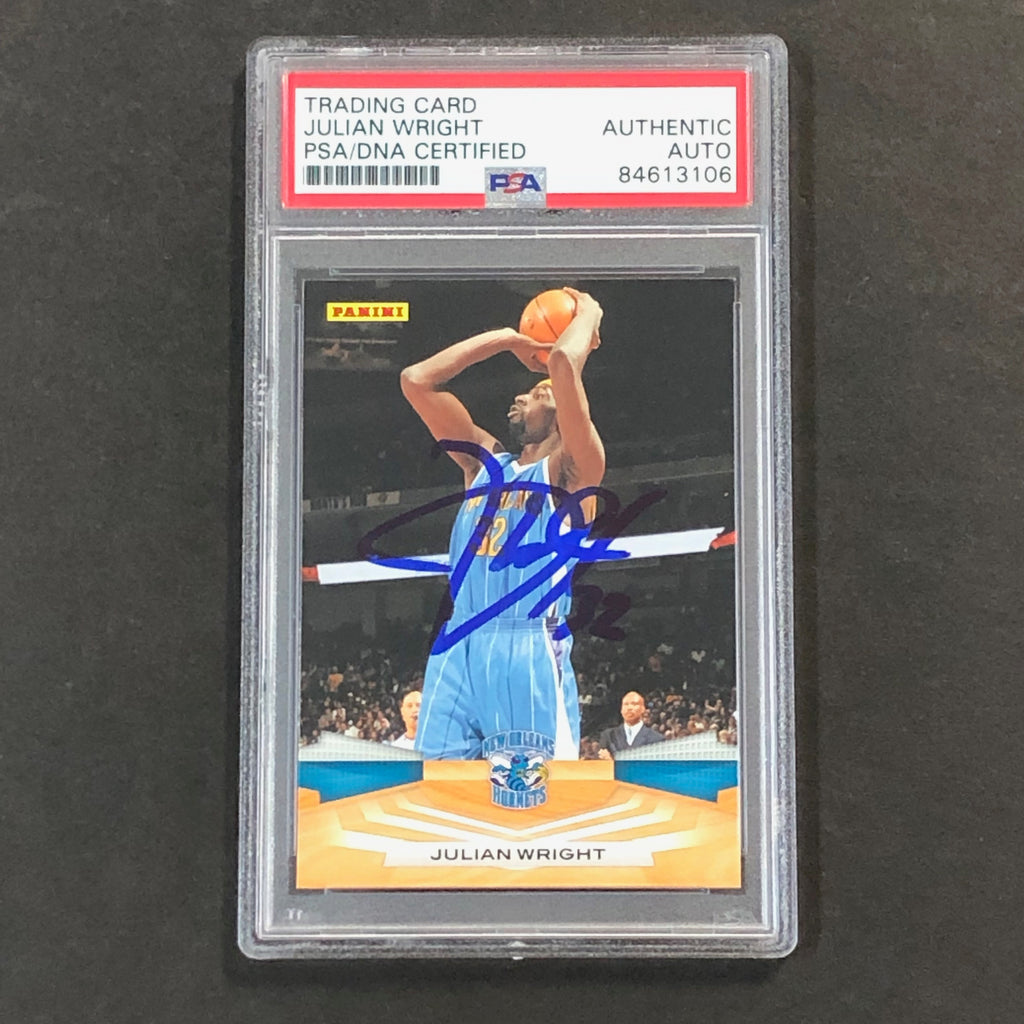 Up for sale is a 2009-10 Panini #188 card signed by Julian Wright who notably played for the New Orleans Hornets. The autograph of Julian on this card was authenticated by a team of experts at PSA/DNA Authentication Services (PSA/DNA) and encapsulated so you can rest assured you are purchasing the real deal.