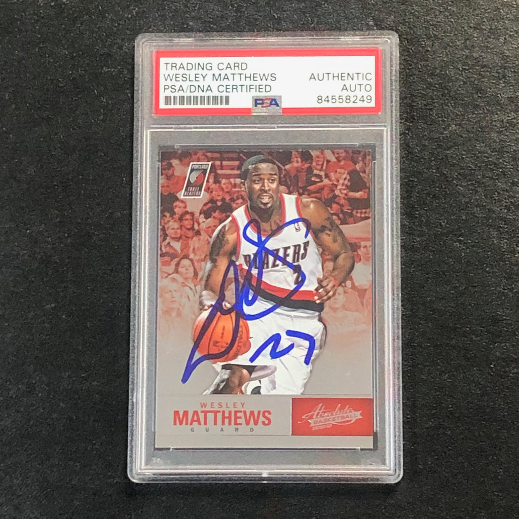 Up for sale is a 2012-13 Absolute Basketball #38 card signed by Wesley Matthews. The autograph of Wesley on this card was authenticated by a team of experts at PSA/DNA Authentication Services (PSA/DNA) and encapsulated so you can rest assured you are purchasing the real deal.