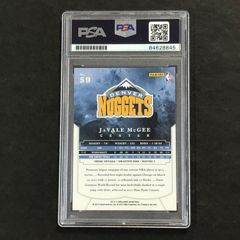 Up for sale is a 2012-13 Panini Brilliance #59 card signed by JaVale McGee who notably played for the Denver Nuggets. The autograph of JaVale on this card was authenticated by a team of experts at PSA/DNA Authentication Services (PSA/DNA) and encapsulated so you can rest assured you are purchasing the real deal.