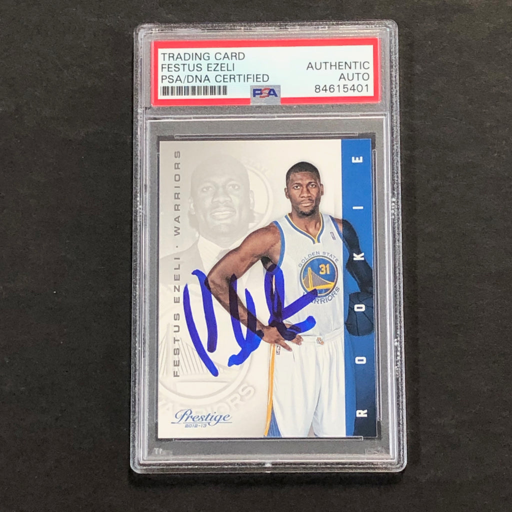 Up for sale is a 2012-13 PANINI PRESTIGE #229 card signed by Festus Ezeli. The autograph of Festus on this card was authenticated by a team of experts at PSA/DNA Authentication Services (PSA/DNA) and encapsulated so you can rest assured you are purchasing the real deal.
