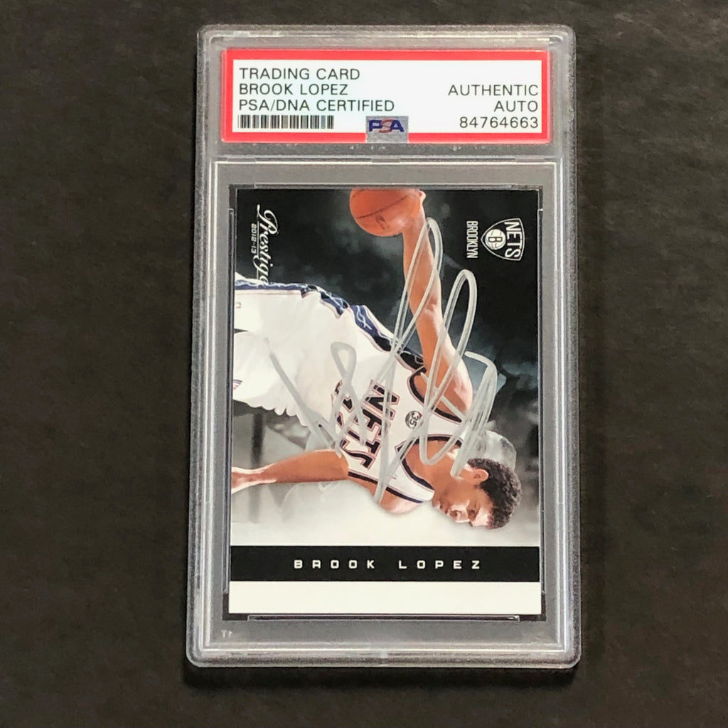 Up for sale is a 2012-13 Panini Prestige #92 signed by BROOK LOPEZ. The autograph of Brook on this card was authenticated by a team of experts at PSA/DNA Authentication Services (PSA/DNA) and encapsulated so you can rest assured you are purchasing the real deal.