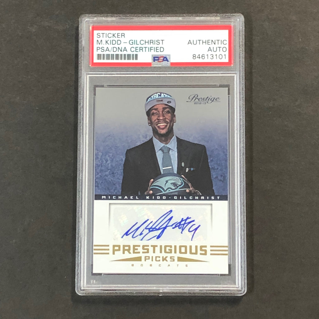 Up for sale is a 2012-13 Panini Prestige PRESTIGIOUS PICKS #46 card signed by Michael Kidd-Gilchrist who notably played for the Charlotte Bobcats. The autograph of Michael on this card was authenticated by a team of experts at PSA/DNA Authentication Services (PSA/DNA) and encapsulated so you can rest assured you are purchasing the real deal.