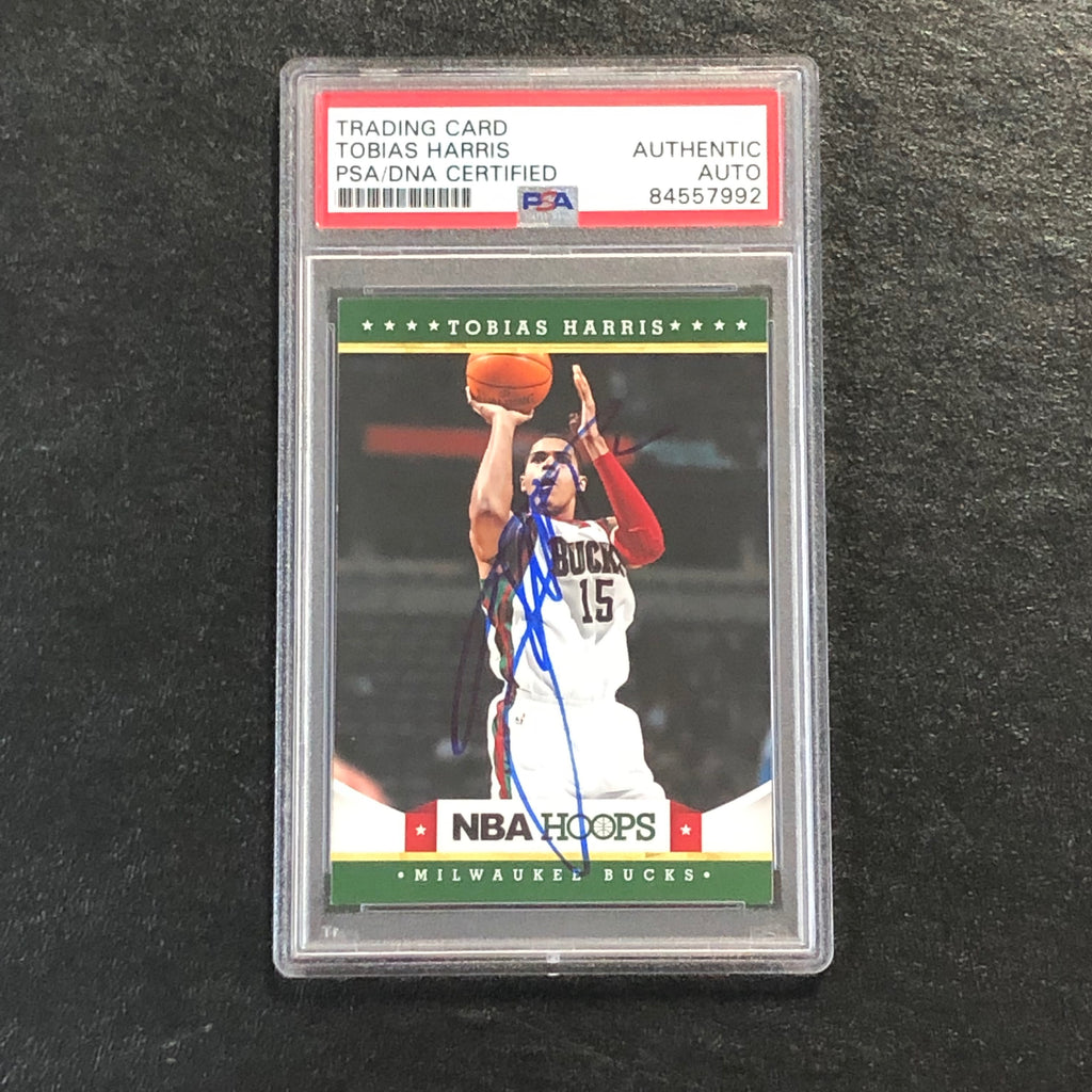 Up for sale is a 2012 NBA Hoops #240 card signed by Tobias Harris, who notably played for the Milwaukee Bucks. The autograph of Tobias on this card was authenticated by a team of experts at PSA/DNA Authentication Services (PSA/DNA) and encapsulated so you can rest assured you are purchasing the real deal.