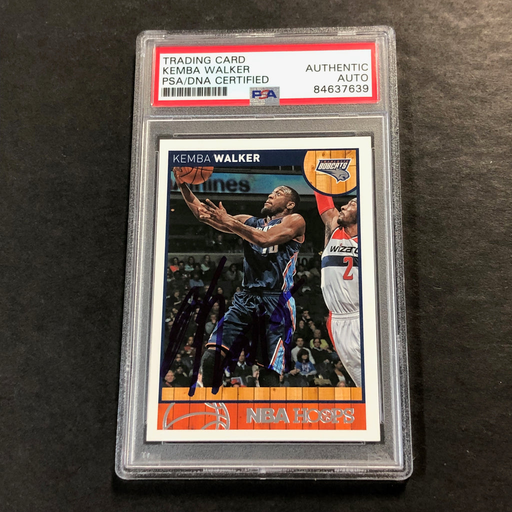 Up for sale is a 2013-14 Panini NBA Hoops #55 card signed by Kemba Walker who notably played for the Charlotte Bobcats. The autograph of Kemba on this card was authenticated by a team of experts at PSA/DNA Authentication Services (PSA/DNA) and encapsulated so you can rest assured you are purchasing the real deal.