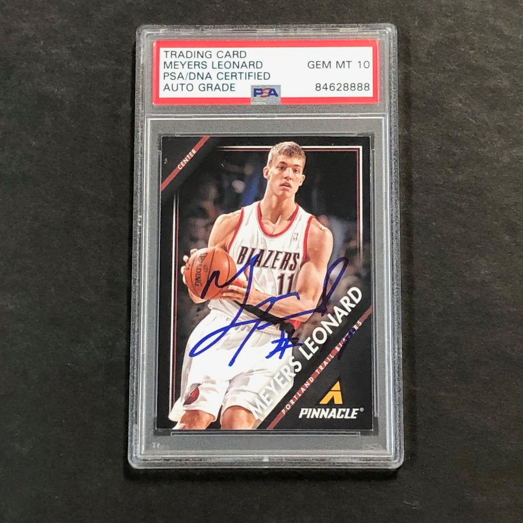 Up for sale is a 2013-14 Pinnacle Basketball #195 card signed by Meyers Leonard. The autograph of Meyers on this card was authenticated by a team of experts at PSA/DNA Authentication Services (PSA/DNA) and encapsulated so you can rest assured you are purchasing the real deal.