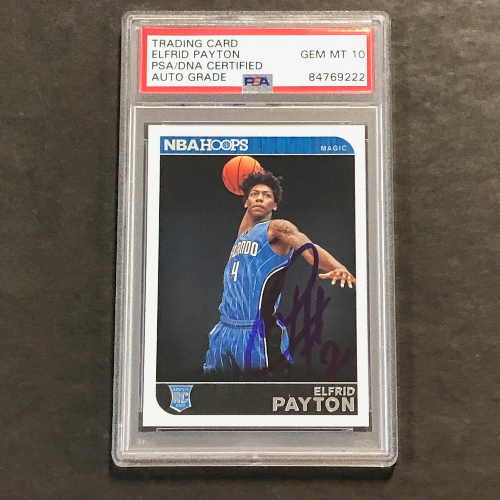 Up for sale is a 2014-15 NBA Hoops #270 card signed by Elfrid Payton, who notably played for the Orlando Magic. The autograph of Elfrid on this card was authenticated by a team of experts at PSA/DNA Authentication Services (PSA/DNA) and encapsulated so you can rest assured you are purchasing the real deal.