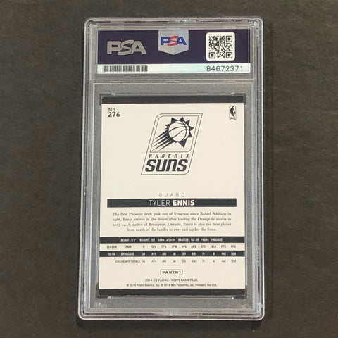 Up for sale is a 2014-15 NBA Hoops #276 rookie card signed by Tyler Ennis who notably played for the Phoenix Suns. The autograph of Tyler on this card was authenticated by a team of experts at PSA/DNA Authentication Services (PSA/DNA) and encapsulated so you can rest assured you are purchasing the real deal.