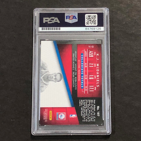 Up for sale is a 2014-15 Panini Prestige #187 card signed by KJ McDaniels who notably played for the Philadelphia 76ers. The autograph of KJ on this card was authenticated by a team of experts at PSA/DNA Authentication Services (PSA/DNA) and encapsulated so you can rest assured you are purchasing the real deal.
