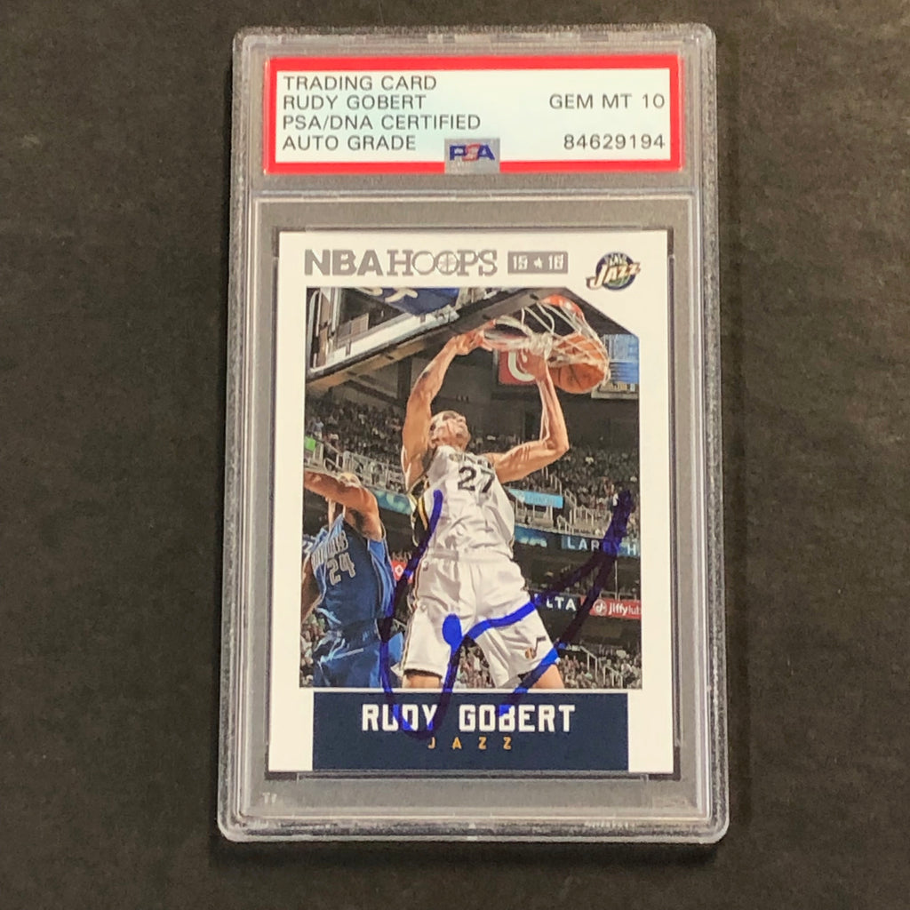 2015-16 NBA Hoops #138 Rudy Gobert Signed Card AUTO 10 PSA Slabbed Jazz