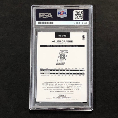 Up for sale is a 2016-17 NBA Hoops #248 card signed by Allen Crabbe. The autograph of Allen on this card was authenticated by a team of experts at PSA/DNA Authentication Services (PSA/DNA) and encapsulated so you can rest assured you are purchasing the real deal.