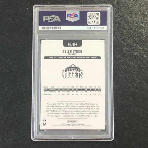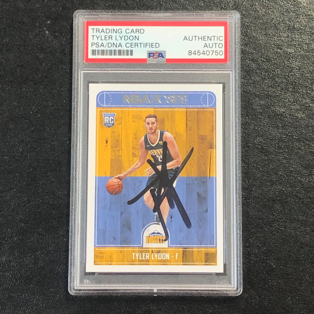 Up for sale is a 2017-18 NBA Hoops #274 card signed by Tyler Lydon who notably played for the Denver Nuggets. The autograph of Tyler on this card was authenticated by a team of experts at PSA/DNA Authentication Services (PSA/DNA) and encapsulated so you can rest assured you are purchasing the real deal.