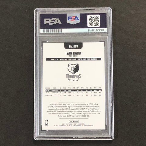2017-18 NBA Hoops #285 Ivan Rabb Signed Card AUTO 10 PSA Slabbed RC Grizzlies