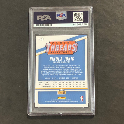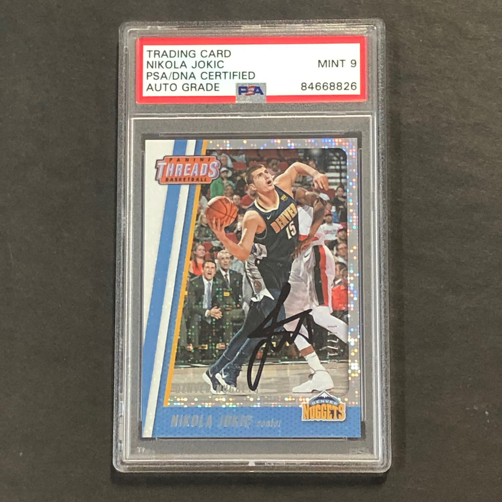 Up for sale is a 2017-18 Panini Threads #20 card signed by Nikola Jokic of the Denver Nuggets. The autograph of the Joker on this card was authenticated by a team of experts at PSA/DNA Authentication Services (PSA/DNA) and encapsulated so you can rest assured you are purchasing the real deal.