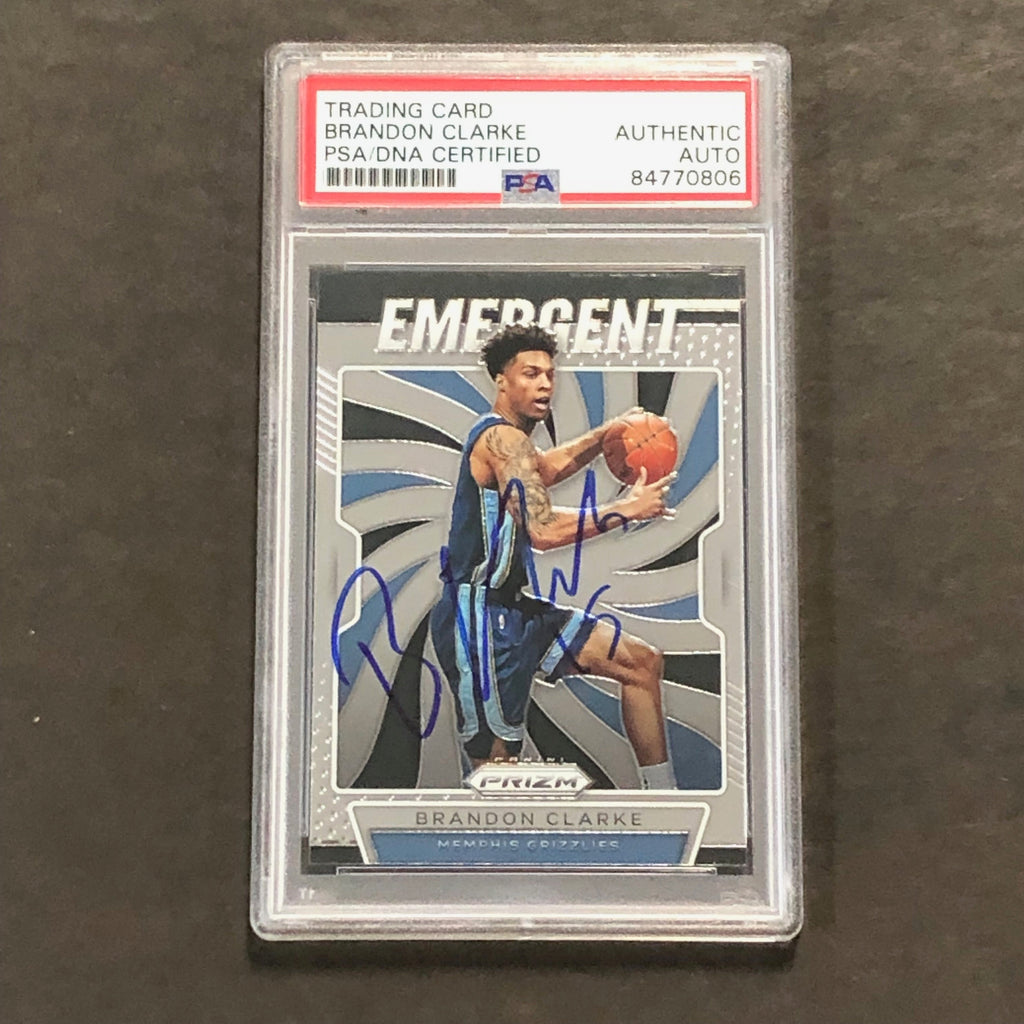 Up for sale is a 2019-20 Panini Prizm Emergent #28 card signed by Brandon Clarke of the Memphis Grizzlies. The autograph of Brandon on this card was authenticated by a team of experts at PSA/DNA Authentication Services (PSA/DNA) and encapsulated so you can rest assured you are purchasing the real deal.