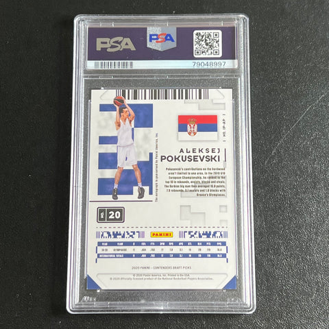 2020-21 Panini Contenders #20 Aleksej Pokusevski Signed Card PSA 8 Slabbed RC Thunder
