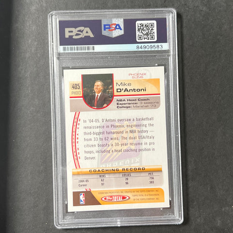 Up for sale is a 2004-05 Topps Total #405 card signed by Mike D'Antoni who notably coached for the Phoenix Suns. The autograph of Mike on this card was authenticated by a team of experts at PSA/DNA Authentication Services (PSA/DNA) and encapsulated so you can rest assured you are purchasing the real deal.