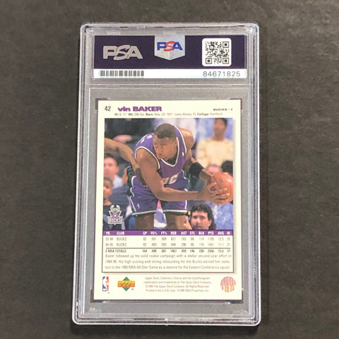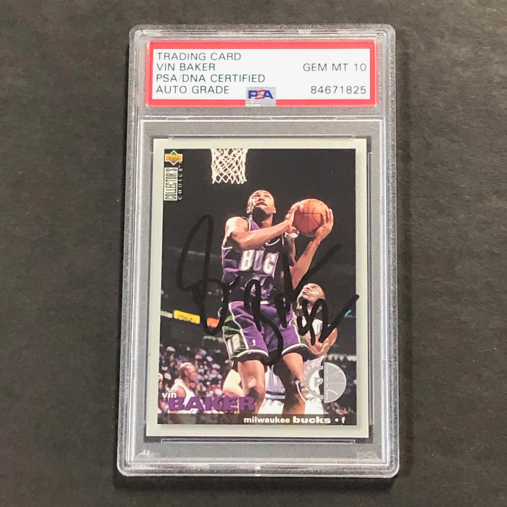 Up for sale is a 1995-96 Upper Deck Collector's Choice #42 card signed by Vin Baker. The autograph of Vin on this card was authenticated by a team of experts at PSA/DNA Authentication Services (PSA/DNA) and encapsulated so you can rest assured you are purchasing the real deal.