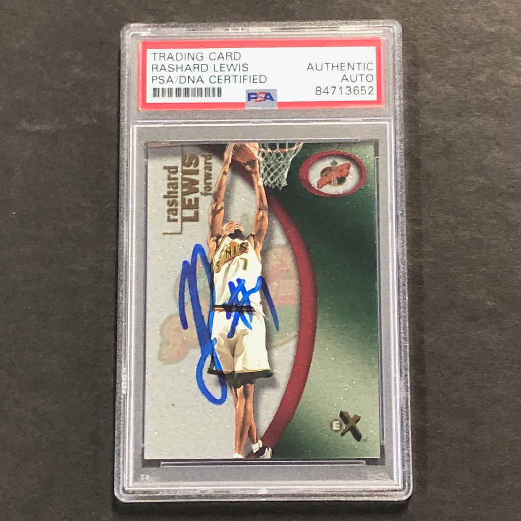 Up for sale is a 2000-01 Fleer #84 card signed by Rashard Lewis, who notably played for the Seattle Supersonics. The autograph of Rashard on this card was authenticated by a team of experts at PSA/DNA Authentication Services (PSA/DNA) and encapsulated so you can rest assured you are purchasing the real deal.