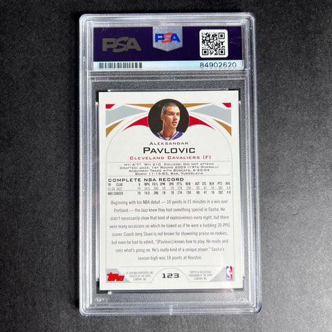 Up for sale is a 2004-05 Topps #123 card signed by Aleksandar Pavlovic who notably played for the Cleveland Cavaliers. The autograph of Aleksandar on this card was authenticated by a team of experts at PSA/DNA Authentication Services (PSA/DNA) and encapsulated so you can rest assured you are purchasing the real deal.