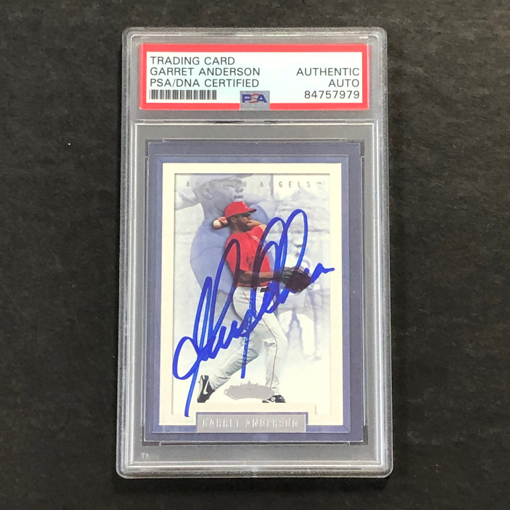 Up for sale is a 2002 Fleer #32 card signed by Garret Anderson, who notably played for the Los Angeles Angels of Anaheim. The autograph of Garret on this card was authenticated by a team of experts at PSA/DNA Authentication Services (PSA/DNA) and encapsulated so you can rest assured you are purchasing the real deal.