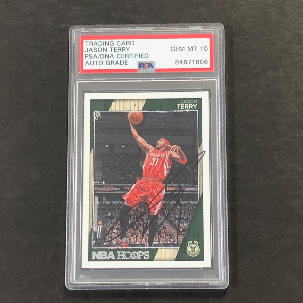 Up for sale is a 2016-17 NBA Hoops #231 Auto 10 card signed by Jason Terry who notably played for the Milwaukee Bucks. The autograph of Jason on this card was authenticated by a team of experts at PSA/DNA Authentication Services (PSA/DNA) and encapsulated so you can rest assured you are purchasing the real deal.