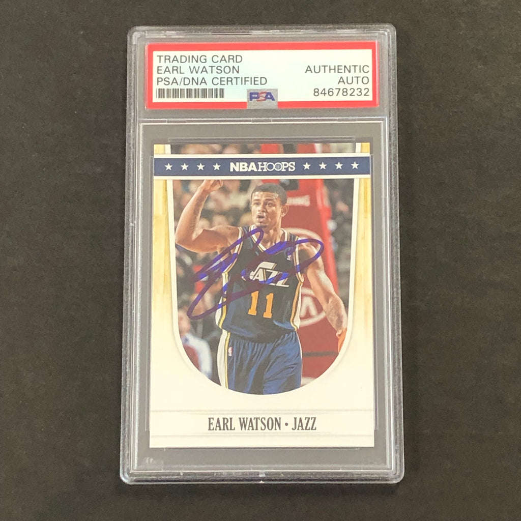 Up for sale is a 2012-13 Panini Hoops #237 card signed by Earl Watson who notably played for the Utah Jazz. The autograph of Earl on this card was authenticated by a team of experts at PSA/DNA Authentication Services (PSA/DNA) and encapsulated so you can rest assured you are purchasing the real deal.