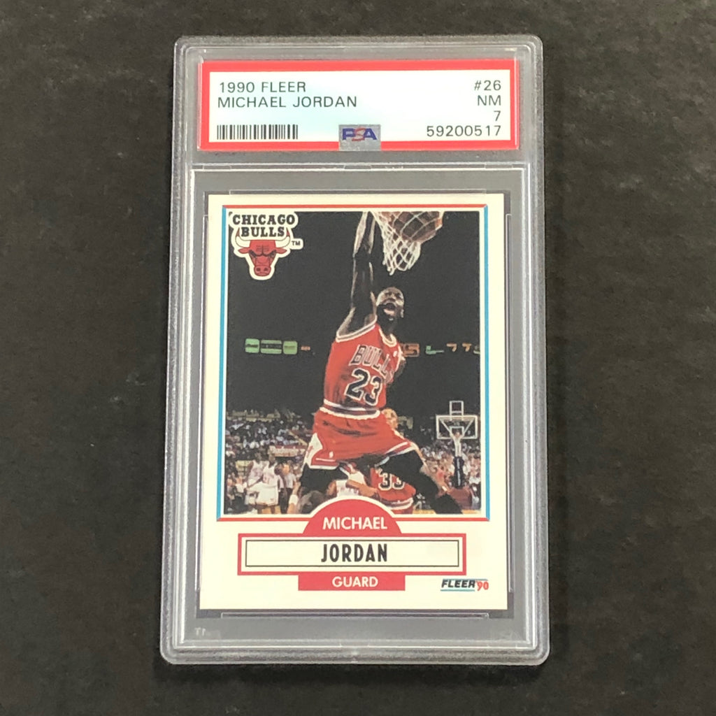 Up for sale is a 1990 Fleer #26 Michael Jordan PSA 7 NM Bulls. This card has been professionally graded by PSA, forever solidifying its condition so you can buy with confidence.
