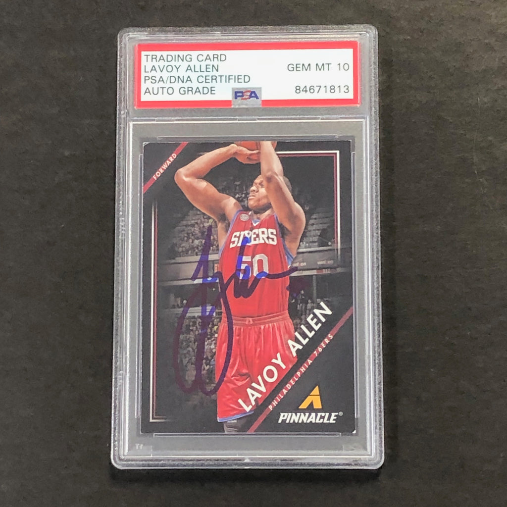 Up for sale is a 2013-14 Pinnacle #253 card signed by LAVOY ALLEN who notably played for the Philadelphia 76ers. The autograph of LAVOY on this card was authenticated by a team of experts at PSA/DNA Authentication Services (PSA/DNA) and encapsulated so you can rest assured you are purchasing the real deal.
