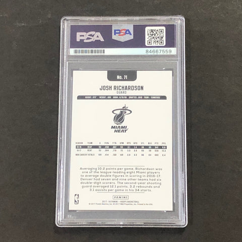 Up for sale is a 2017-18 NBA Hoops #71 card signed by Josh Richardson who notably played for the Miami Heat. The autograph of Josh on this card was authenticated by a team of experts at PSA/DNA Authentication Services (PSA/DNA) and encapsulated so you can rest assured you are purchasing the real deal.