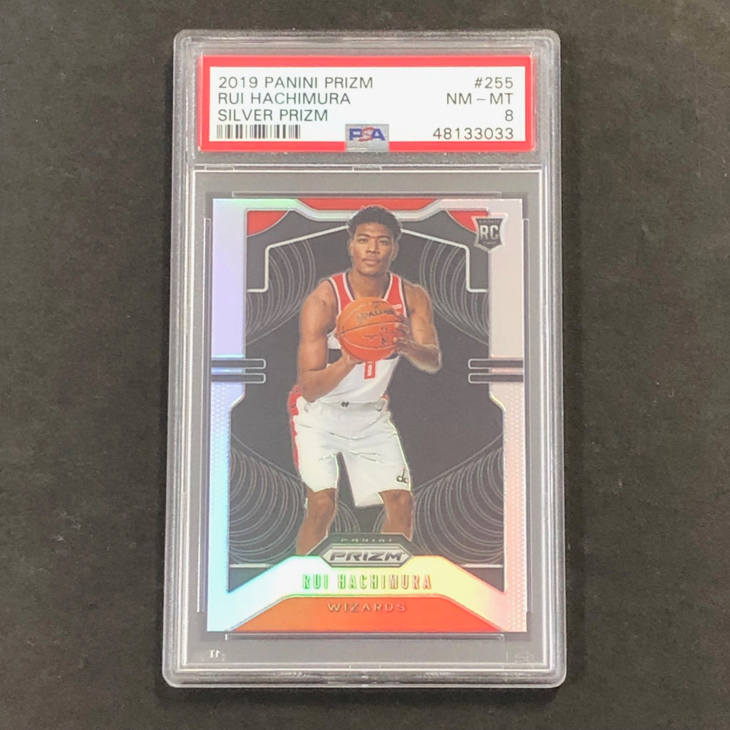 Up for 2019 Panini Prizm #255 Rui Hachimura PSA 8 NM-MT Silver Prizm. This card has been professionally graded a 10 by PSA, forever solidifying its condition so you can buy with confidence.