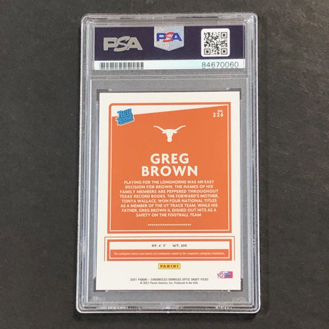 Up for sale is a 2021-22 Panini Optic #226 card signed by Greg Brown. The autograph of Greg on this card was authenticated by a team of experts at PSA/DNA Authentication Services (PSA/DNA) and encapsulated so you can rest assured you are purchasing the real deal.