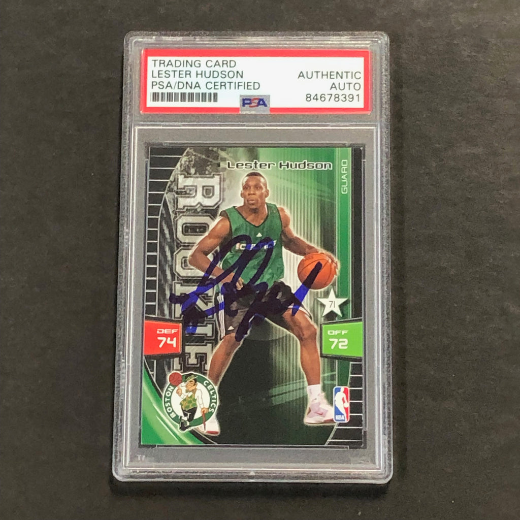 Up for sale is a 2009-10 Adrenalyn XL #139 card signed by Lester Hudson who notably played for the Boston Celtics. The autograph of Lester on this card was authenticated by a team of experts at PSA/DNA Authentication Services (PSA/DNA) and encapsulated so you can rest assured you are purchasing the real deal.