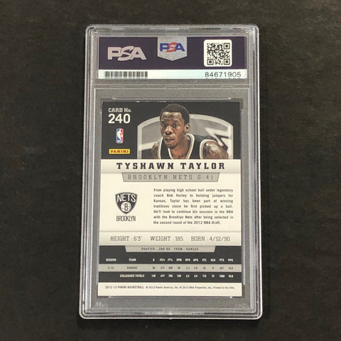 Up for sale is a 2012-13 Panini #240 Tyshawn Taylor signed card. The autograph of Joe on this card was authenticated and graded a 10 by a team of experts at PSA/DNA Authentication Services (PSA/DNA) and encapsulated so you can rest assured you are purchasing the real deal.