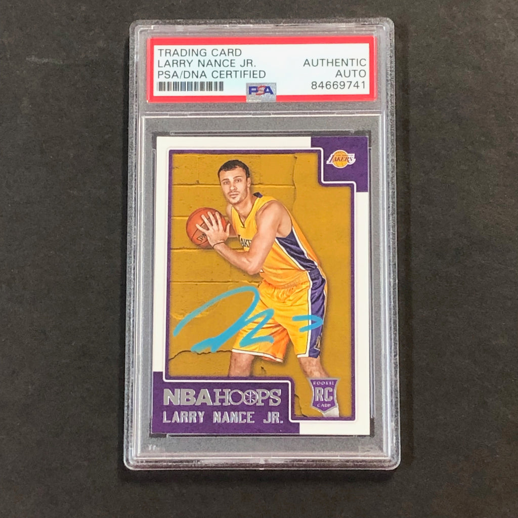 Up for sale is a 2015-16 NBA Hoops #291 card signed by Larry Nance Jr. who notably played for the Los Angeles Lakers. The autograph of Larry on this card was authenticated by a team of experts at PSA/DNA Authentication Services (PSA/DNA) and encapsulated so you can rest assured you are purchasing the real deal.