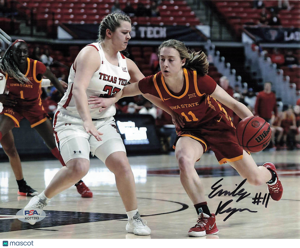 Up for sale is a signed basketball 8x10 Photo autographed by Emily Ryan of the Iowa State Cyclones. The autograph has been professionally authenticated by PSA, providing confidence in the authenticity of this basketball collectible. A great addition to any basketball or sports memorabilia collection. Listed With Mascot.