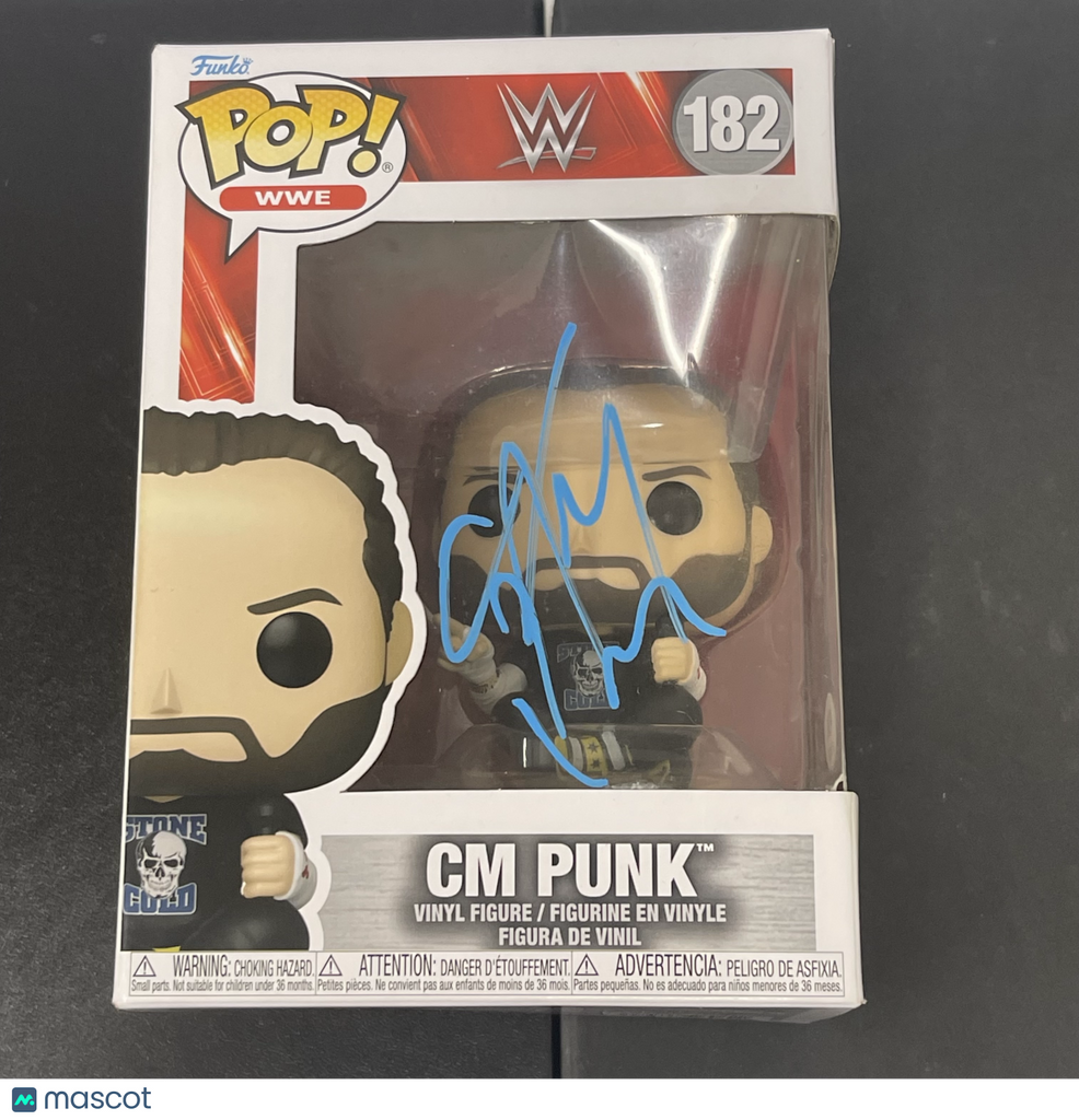 Thank you for checking out our store! We value each and every customer and want you to be happy with the purchase you are making. Up for sale is a Funko Pop! signed by wrestler CM Punk. The autograph of CM Punk on this Funko Pop! was authenticated by a team of experts at PSA/DNA so you can rest assured you are purchasing the real deal. We’d like to encourage you, our customer, to reach out to us if you come across any questions. We always take the time to respond to a message from our customers and we’re happy to hear from you! Listed With Mascot.